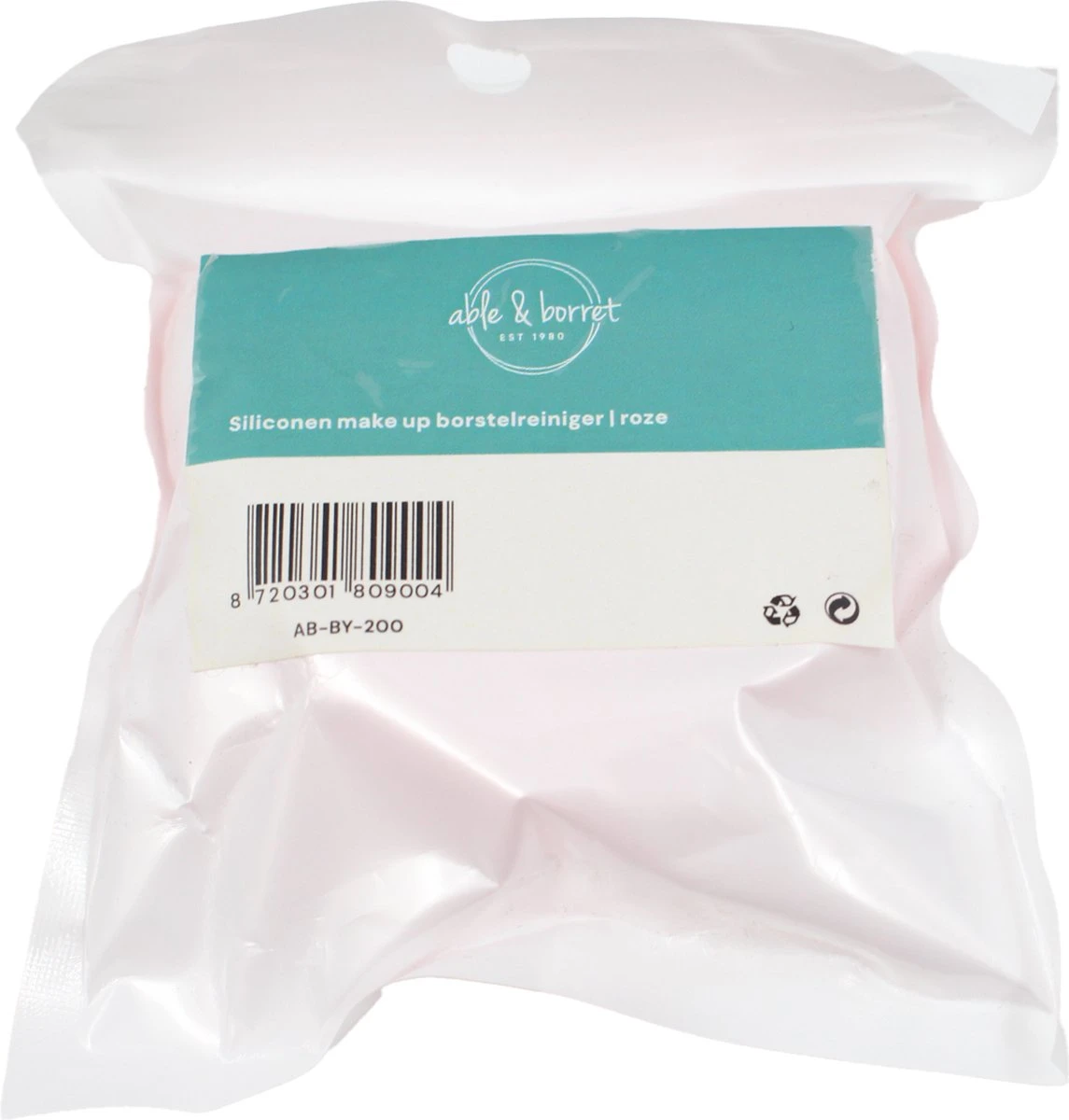 De roze Able & Borret make-up kwastenreiniger is gemaakt voor het reinigen van make-up kwasten. In de opening kun je gemakkelijk je vingers steken zodat je een stevige grip heb. De grote ribbels kunnen gebruikt worden voor grote kwasten en de stippen voor de kleinere, fijnere kwasten. Je kan de kwasten schoonmaken onder de kraan maar voor een diepe schoonmaak worden geschikte reinigingsmiddelen aanbevolen. De kwastenreiniger is flexibel en kan dus makkelijk meebewegen met de kwasten tijdens het schoonmaken.